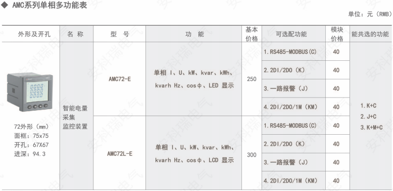 AMC 系列智能電量采集監(jiān)控裝置,是針對(duì)電力系統(tǒng)、工礦企業(yè)、公用設(shè)施、智能大廈的電力監(jiān)控需求而設(shè)計(jì)的智能儀表,它集成電力參數(shù)的測(cè)量(如單相或者三相的電流、電壓、有功功率、無功功率、視在功率、頻率、功率因數(shù))以及電能監(jiān)測(cè)和考核管理。同時(shí)它具有多種外圍接口功能可供用戶選擇∶帶有RS485通訊接口,采用MODDS-RTU協(xié)議可滿足通訊聯(lián)網(wǎng)管理的需要;4-20mA的模擬量輸出可與測(cè)量的電參量相對(duì)應(yīng),滿足DCS等接口要求;帶開關(guān)量輸入和繼電器輸出可實(shí)現(xiàn)斷路器開關(guān)的“遙信”和“遙控”的功能。采用高亮度LED/LCD顯示界面,通過按鍵來實(shí)現(xiàn)參數(shù)設(shè)置和控制,非常適用于實(shí)時(shí)電力監(jiān)控系統(tǒng)。可以直接取代常規(guī)電力變送器及測(cè)量儀表。作為一種智能化、數(shù)字化的前端采集元件,該儀表已廣泛應(yīng)用于各種控制系統(tǒng)、SCADA系統(tǒng)和能源管理系統(tǒng)中。