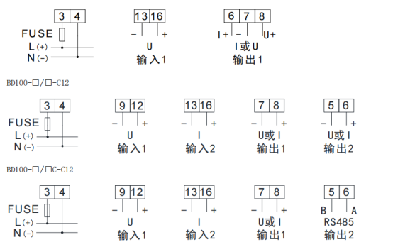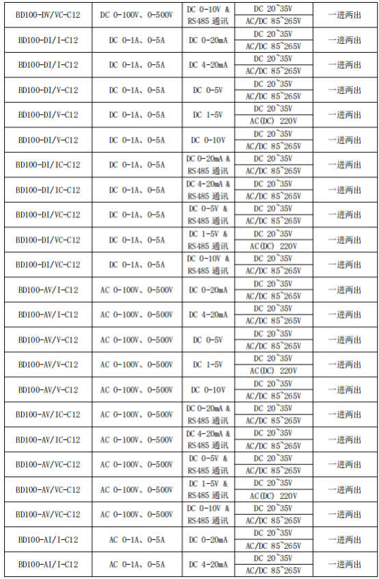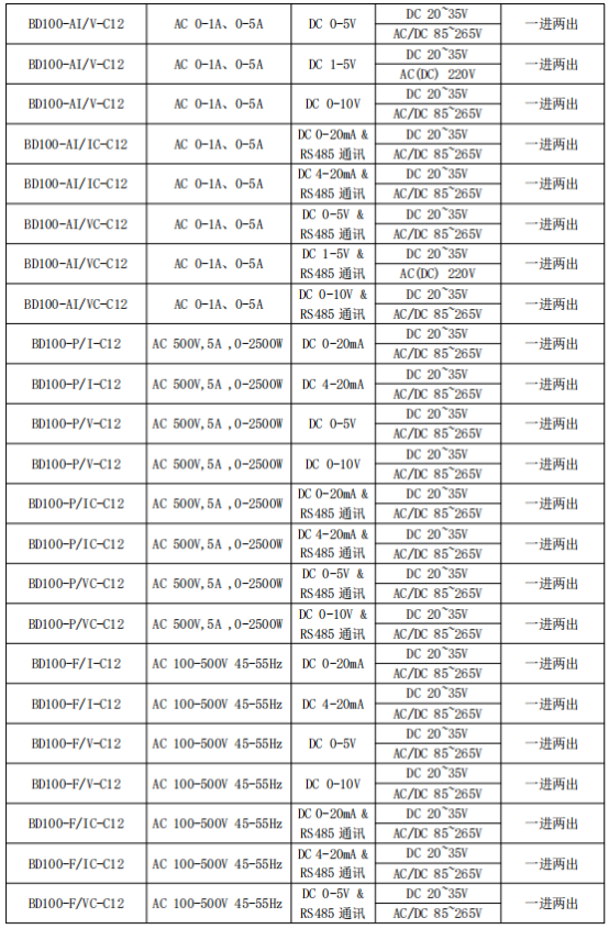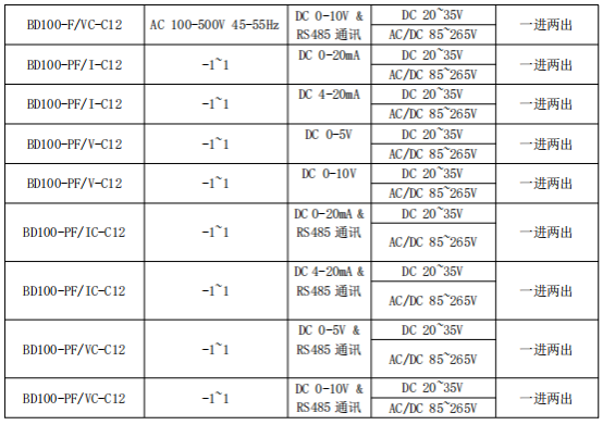 BD100 系列電力變送器是一種將電網(wǎng)中的電流、電壓電參量,經(jīng)隔離變送成線性的直流模擬信號(hào)或數(shù)字信號(hào)裝置。產(chǎn)品符合 GB/T13850-1998、IEC-688 標(biāo)準(zhǔn)。