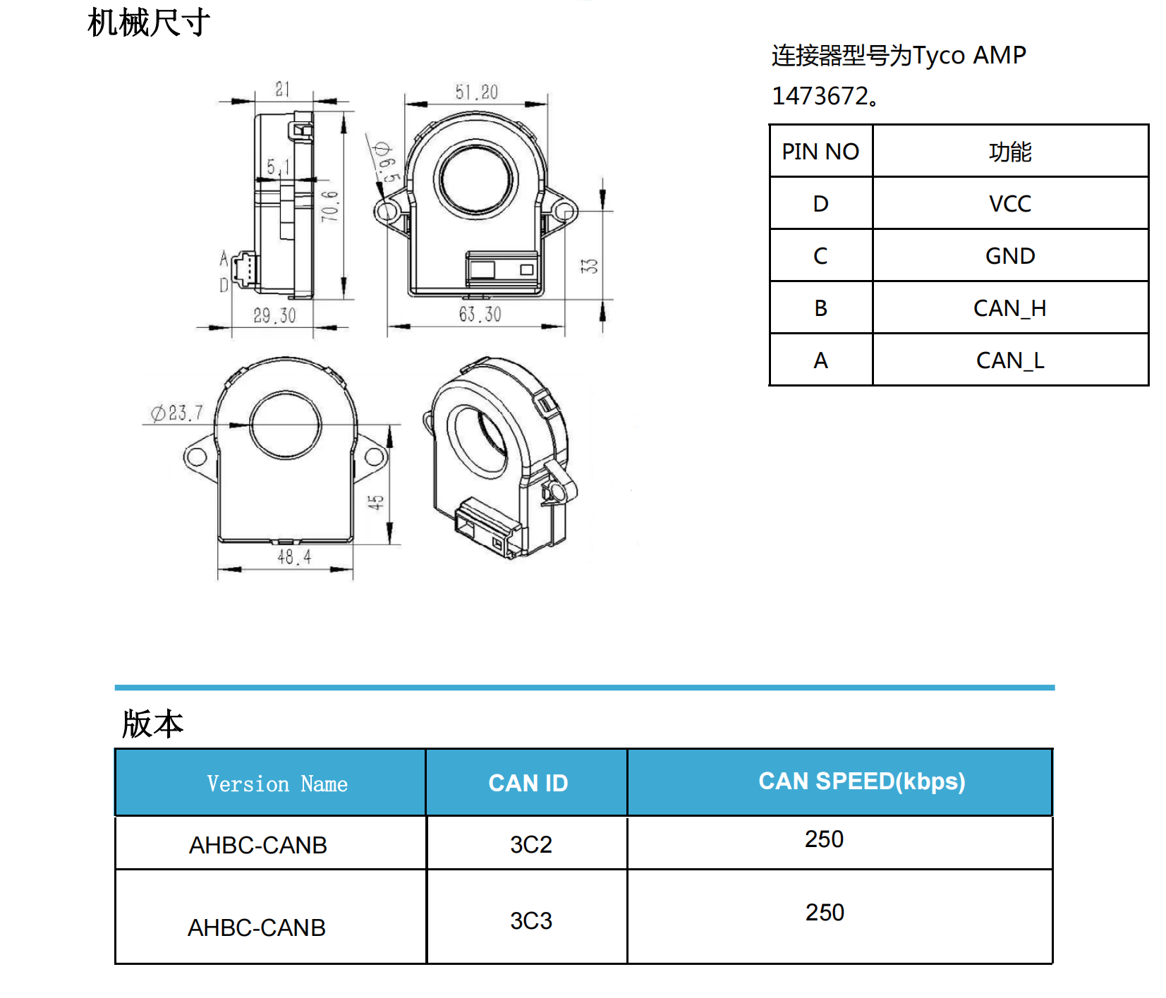 AHBC-CANB500高精度直流電流傳感器