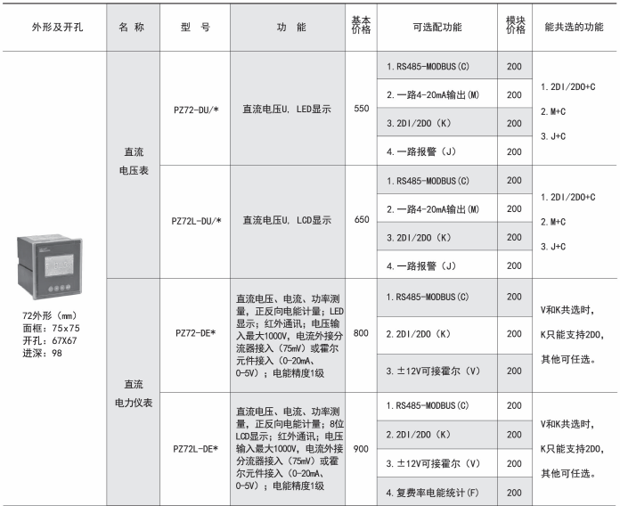 該系列儀表可測量直流系統(tǒng)中的電壓、電流、功率、正向與反向電能??蓭S485通訊接口、模擬量數(shù)據(jù)轉(zhuǎn)換、開關(guān)量輸入/輸出等功能,既可用于本地顯示,又能與工控設(shè)備、計算機連接,組成測控系統(tǒng)。適用于直流屏、太陽能發(fā)電、電信基站等直流系統(tǒng)的電力參數(shù)檢測。