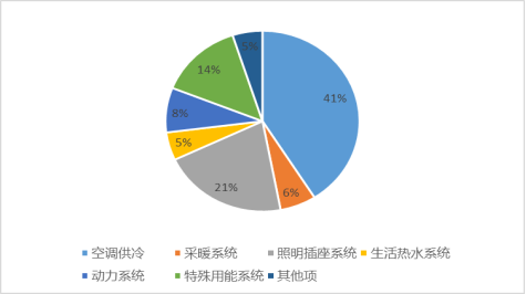 典型建筑行業(yè)主要用電設備耗電比例圖