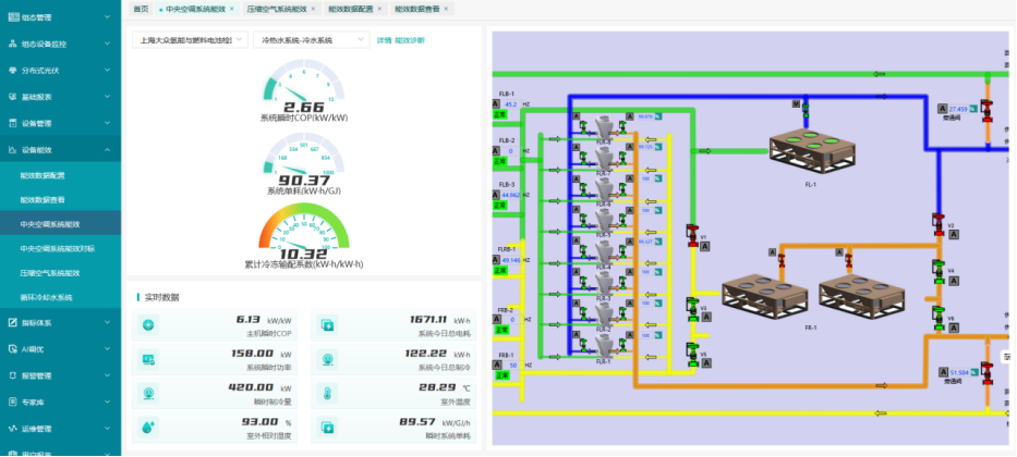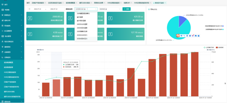 包括系統(tǒng)COP、系統(tǒng)單耗、主機COP、制冷量、系統(tǒng)今日電耗、組態(tài)監(jiān)控。