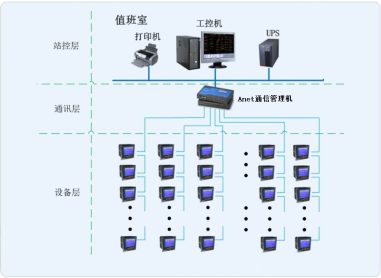 網(wǎng)絡(luò)通訊層主要為:Anet智能網(wǎng)關(guān)將配電柜內(nèi)的綜保和電力儀表集中采集,同時遠(yuǎn)傳至站控層,完成現(xiàn)場層和站控層之間的數(shù)據(jù)交互。