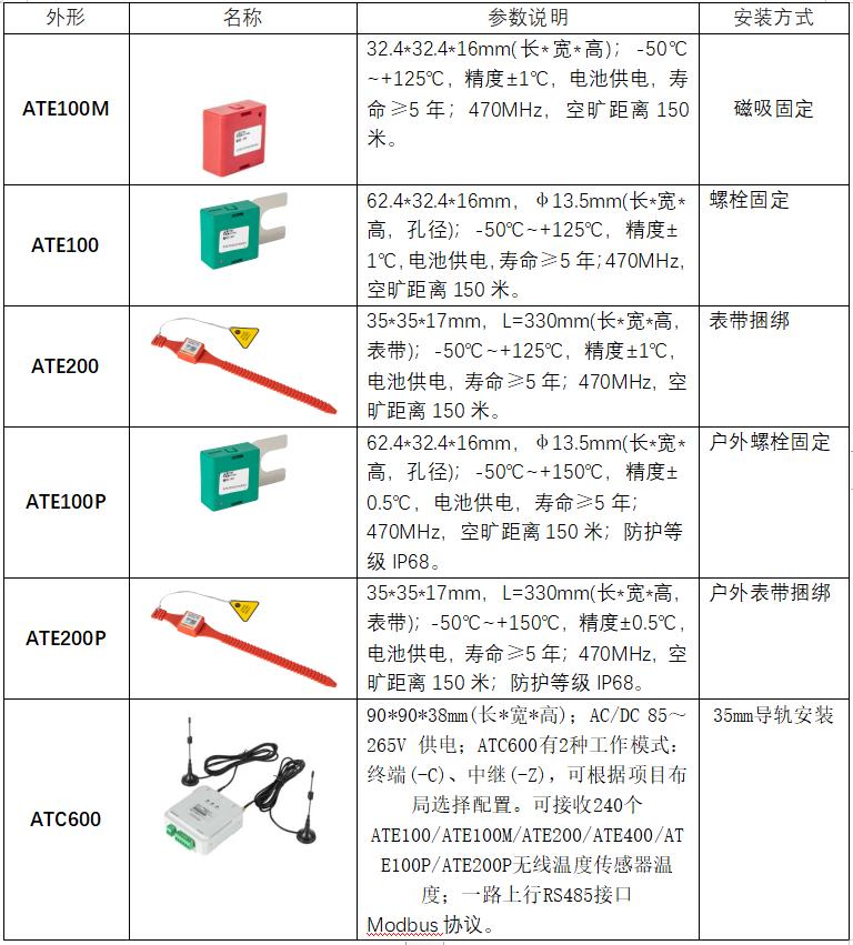 根據(jù)上述要求,故此選擇安科瑞的無線測溫產(chǎn)品如下表。