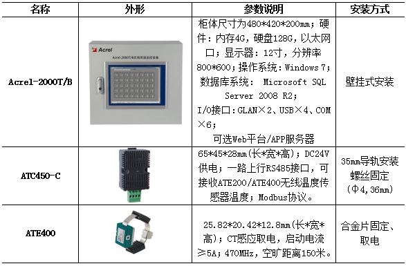 根據(jù)上述要求,故此選擇安科瑞的智能操控裝置及無(wú)線測(cè)溫產(chǎn)品如下表。