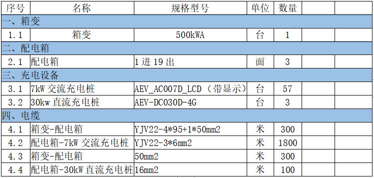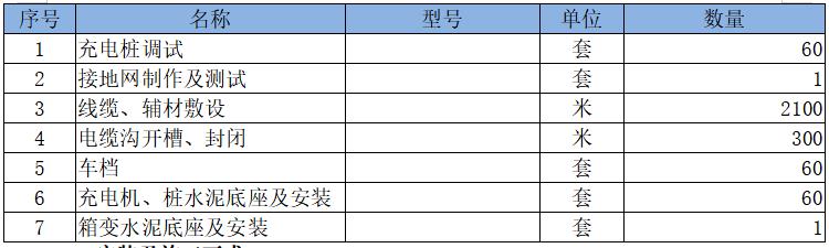 3.5.1充電設(shè)備及材料配置表: