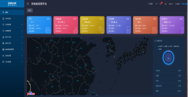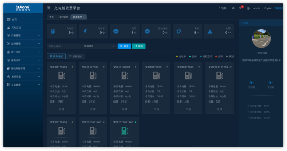 可以按站點(diǎn)名稱進(jìn)行篩選,顯示站點(diǎn)詳情、充電槍列表、統(tǒng)計(jì)訂單信息、故障記錄,點(diǎn)擊某個(gè)充電槍編號后在進(jìn)入充電槍監(jiān)控頁面