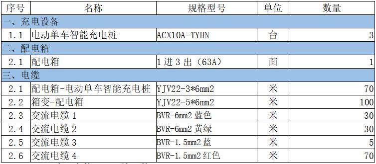 3.3.1充電設(shè)備及材料配置表: