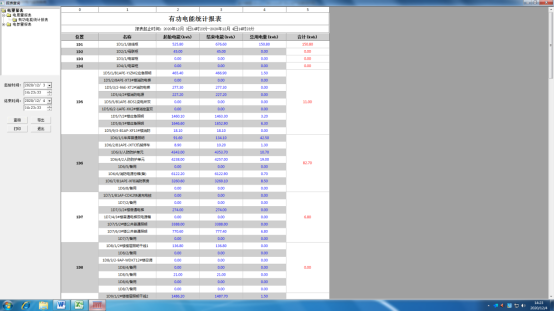 電能報表是對用電量的管理以報表形式呈現(xiàn),該報表可以實現(xiàn)系統(tǒng)運行期間的任意時間段內(nèi)的月抄表,日抄表,小時抄表等功能,且可以Excel形式導出或打印。界面如圖5所示。