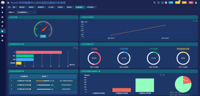1)通過對數(shù)據(jù)中心能效分類并排名,通過圖表形式展示,直觀地展示數(shù)據(jù)中心各項用能情況,以及當(dāng)月PUE日曲線圖。