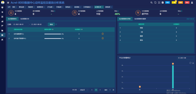6.3.9告警分析:同時對數(shù)據(jù)中心所有報警進(jìn)行統(tǒng)計,提供同環(huán)比的數(shù)據(jù)比對,幫助用戶改善數(shù)據(jù)中心,保障其正常運(yùn)行。