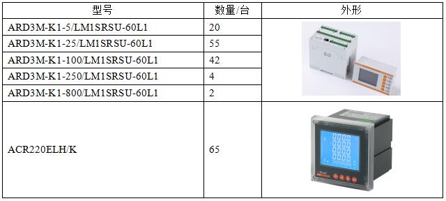 根據(jù)上述要求,選擇安科瑞ARD3M系列智能電動機(jī)保護(hù)器。此外,針對配電室低壓各回路配置ACR220ELH電力儀表,具體配置表如下: