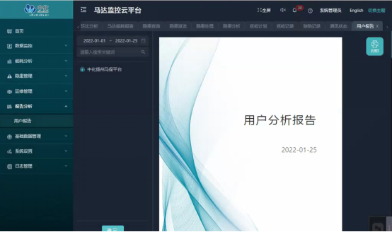 可根據(jù)選擇時(shí)間查看電動(dòng)機(jī)的運(yùn)行狀況,并以報(bào)告的形式展示,支持導(dǎo)出成PDF文件和打印