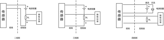 二線制是兩根導(dǎo)線供電的同時傳輸DC4-20mA標(biāo)準(zhǔn)信號;三線制就是電源正端用一根線,信號輸出正端用一根線,電源負端和信號負端共用一根線,用于電壓參考點和電流回路,其供電大多為DC24V,輸出信號有DC4-20mA標(biāo)準(zhǔn)信號;四線制就是供電回路和信號回路各自獨立,采用隔離電路分開,兩根線負責(zé)電源的供應(yīng),另外兩根線負責(zé)輸出信號(如電壓、電流等)。